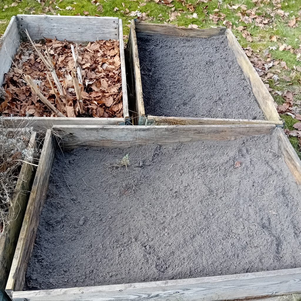 Vi (der var god hjælp fra børnene) fik dog fjernet lidt græs og ukrudt fra et par højbede, lavet af nu gamle og halvrådne pallerammer. De har fået lov til at gro til de sidste 2 år. Så mon ikke det snart kommer igen.
