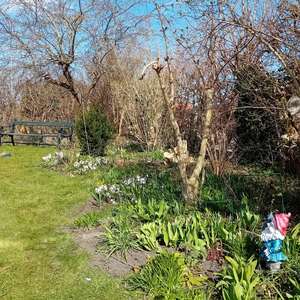 Dejligt men blæsende vejr i dag. Stormen Dave er over landet. Eller det vil sige herhjemme er det vist ikke stormvejr, men bare kraftigt blæsevejr. Men der er også massere af sol. Så selvfølgelig skulle vi ud i haven i dag.